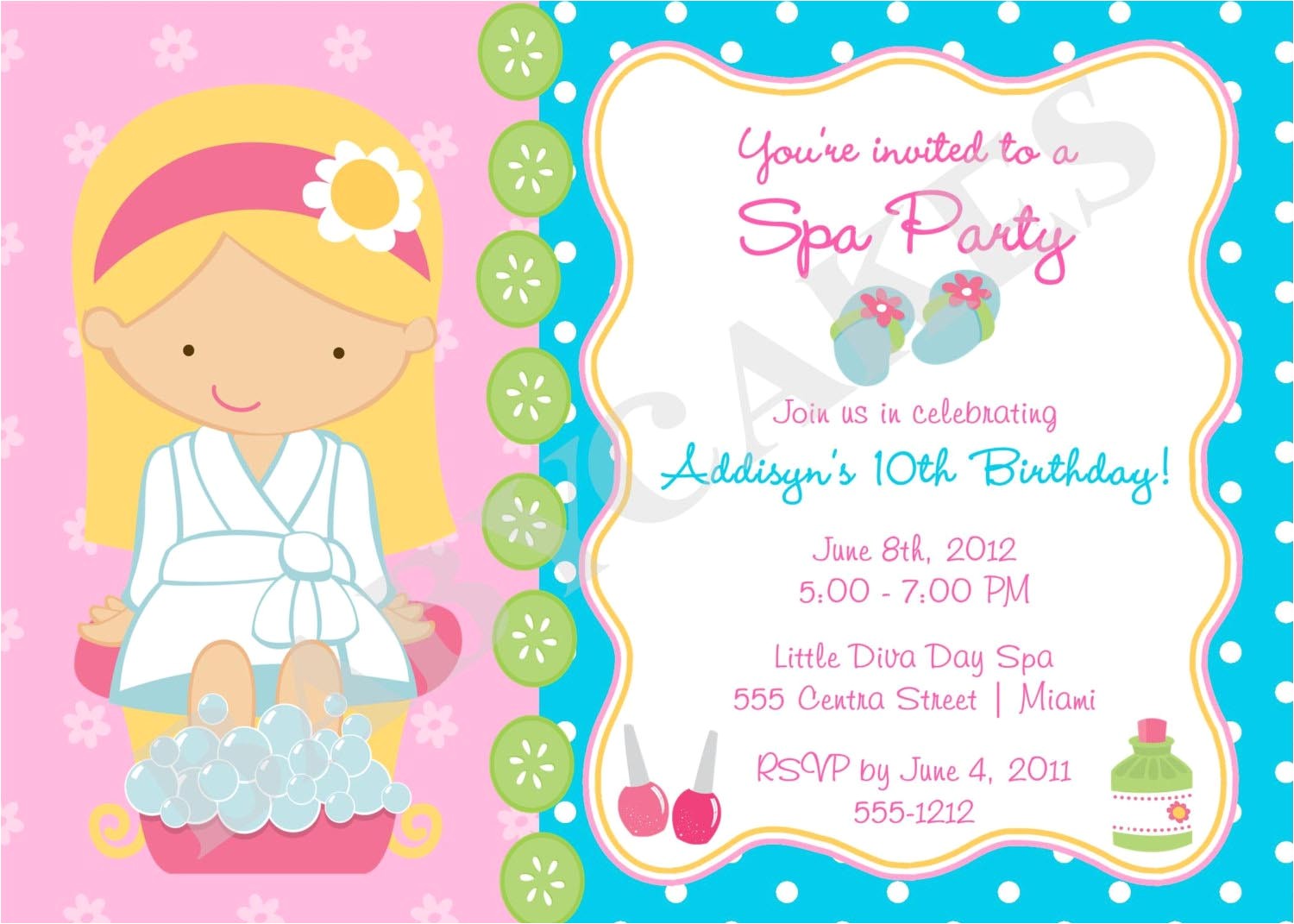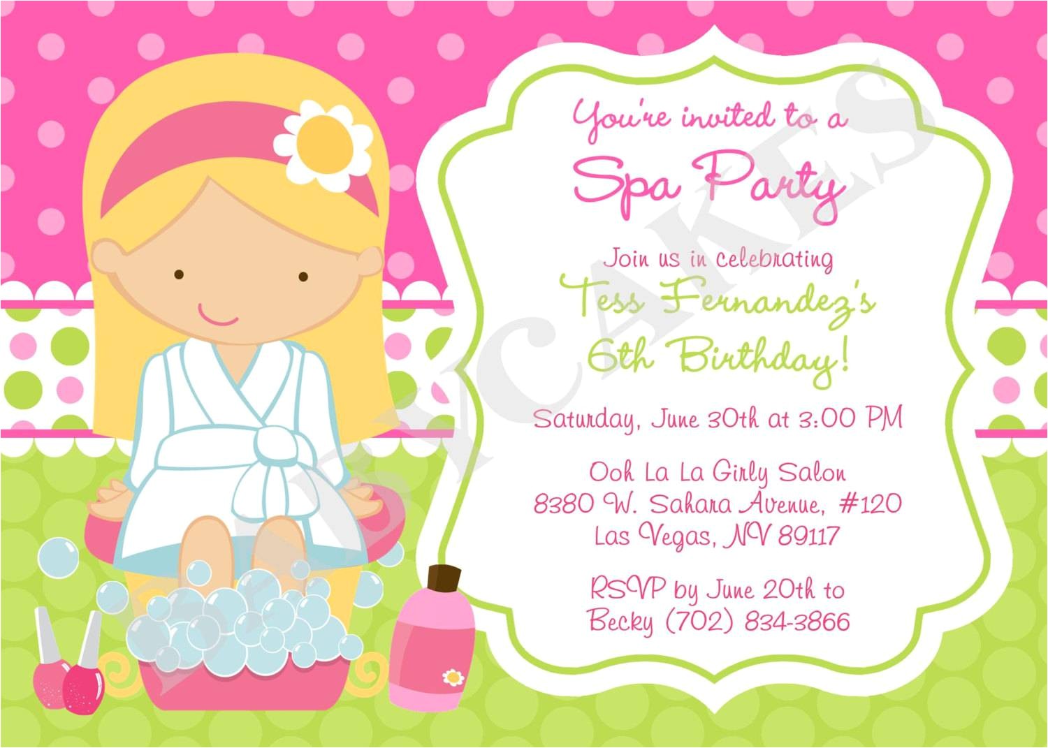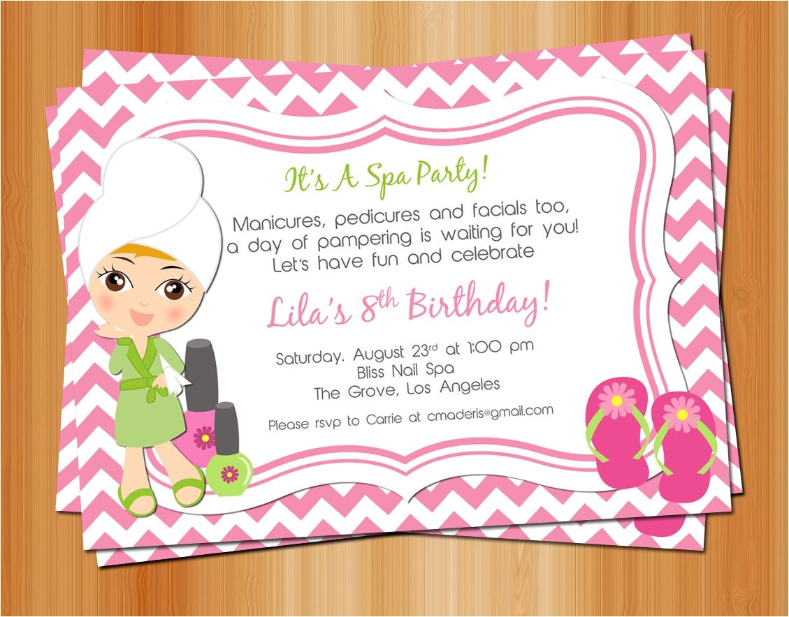 spa party kids birthday invitation mani pedi from spa invitations for birthday party