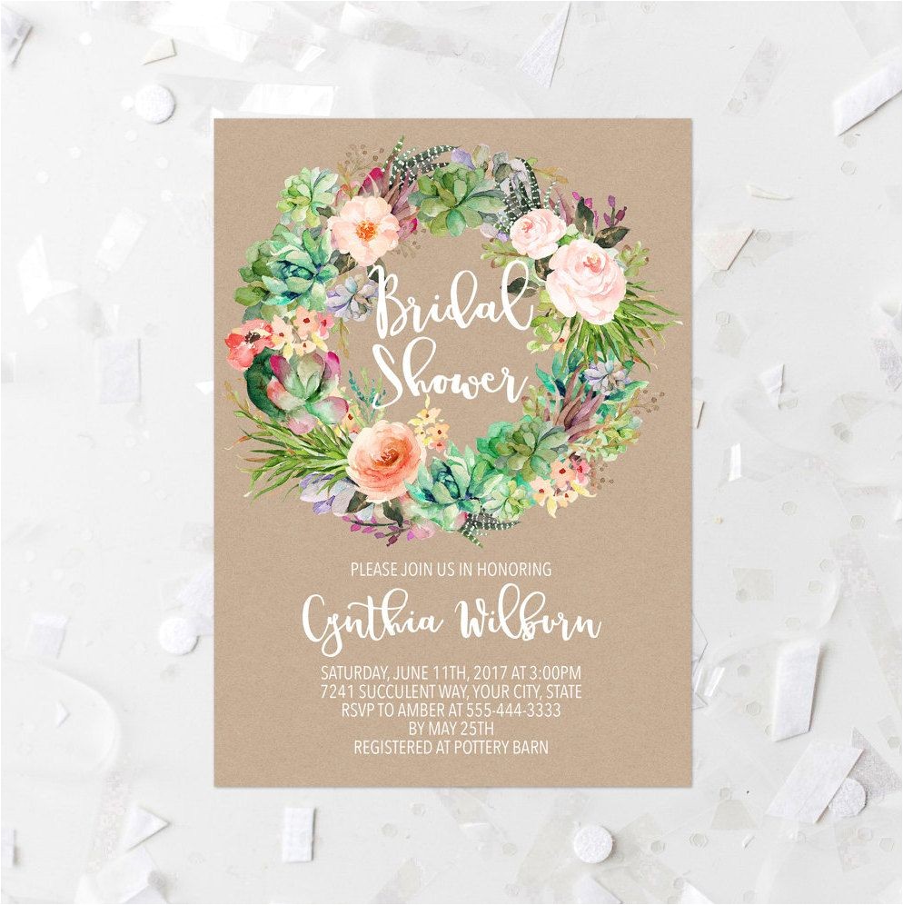 Succulent Wreath Bridal Shower Invitation Printable Cactus from succulent bridal shower invitations