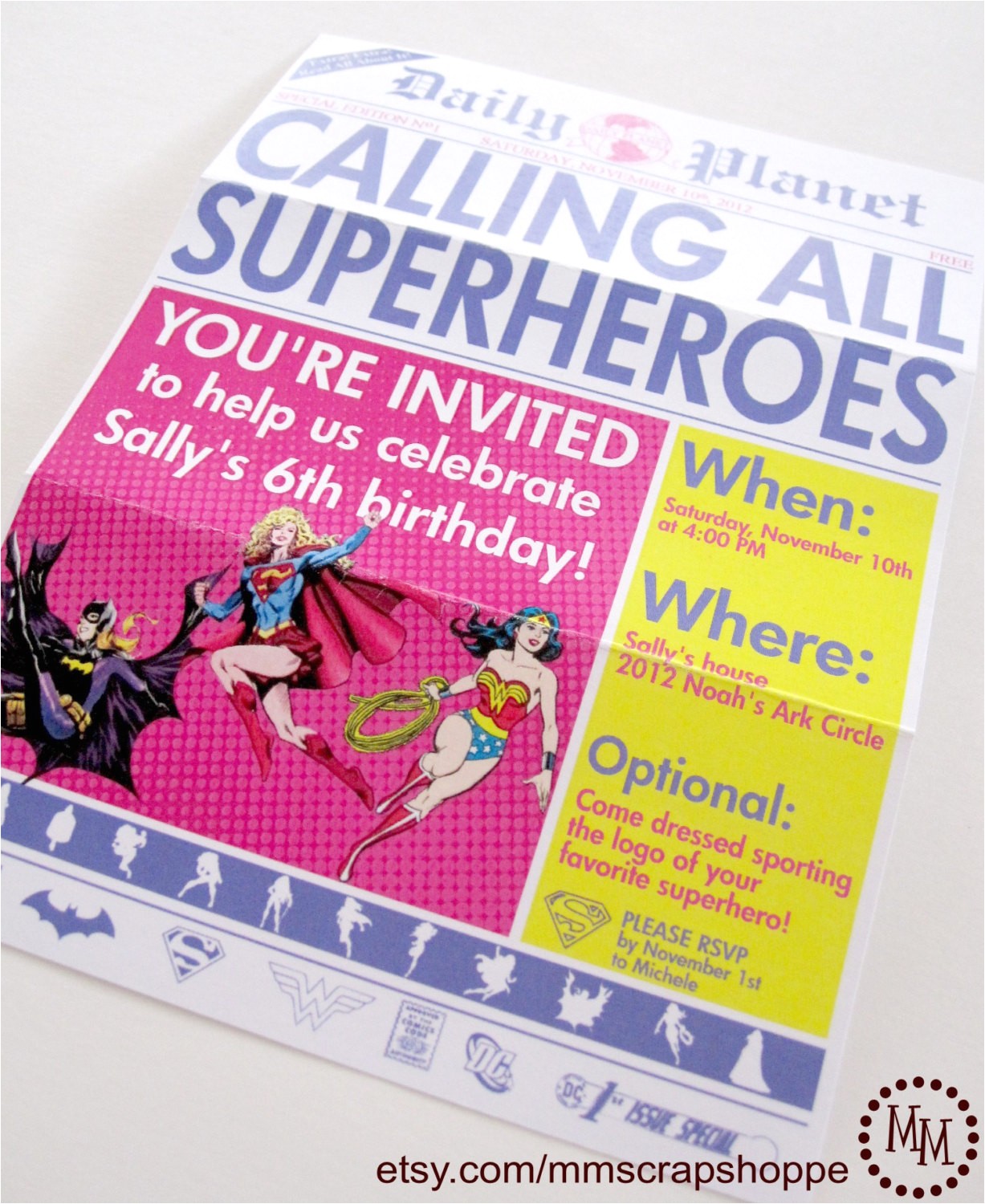 girls superhero newspaper custom printable birthday invitation from superhero newspaper birthday invitations