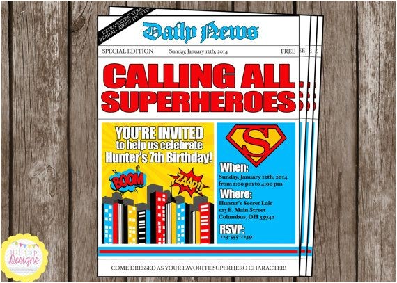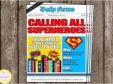 items similar to superhero invitation 5×7 superhero from superhero newspaper birthday invitations