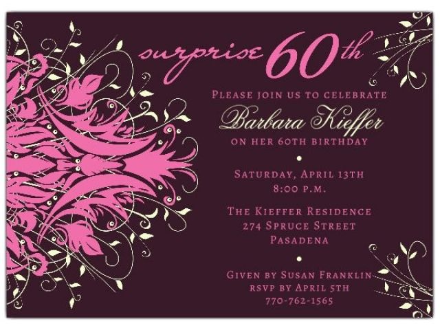 Surprise 60th Birthday Invitation Sayings andromeda Pink Surprise 60th Birthday Invitations and all other pictures, designs or photos on our website are copyright of their respective owners. we get our pictures from another websites, search engines and other sources to use as an inspiration for you. please contact us if you think we are infringing copyright of your pictures using contact page. we will be very happy to help you.