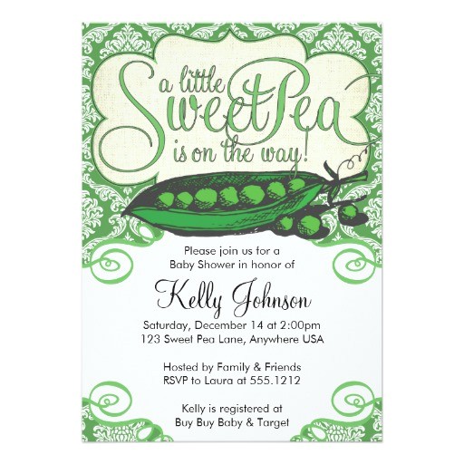 Sweet Pea Baby Shower Invitation 5" X 7" Invitation Card from sweet pea baby shower invitations