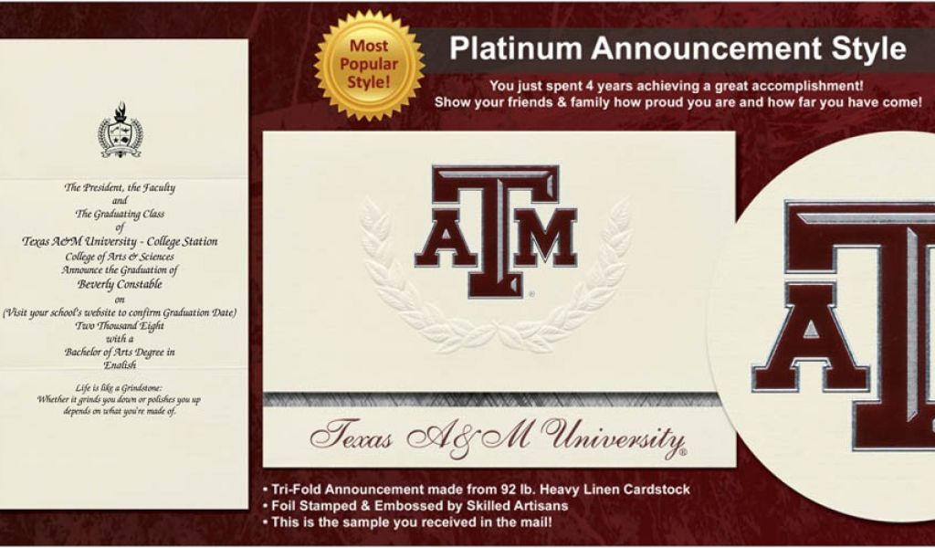 Tamu Graduation Invitations Texas A M University Graduation Announcements Texas A M and all other pictures, designs or photos on our website are copyright of their respective owners. we get our pictures from another websites, search engines and other sources to use as an inspiration for you. please contact us if you think we are infringing copyright of your pictures using contact page. we will be very happy to help you.