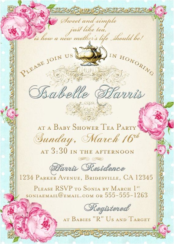 Tea Party Baby Shower Invitation Floral Shabby Girl Baby from tea party baby shower invites
