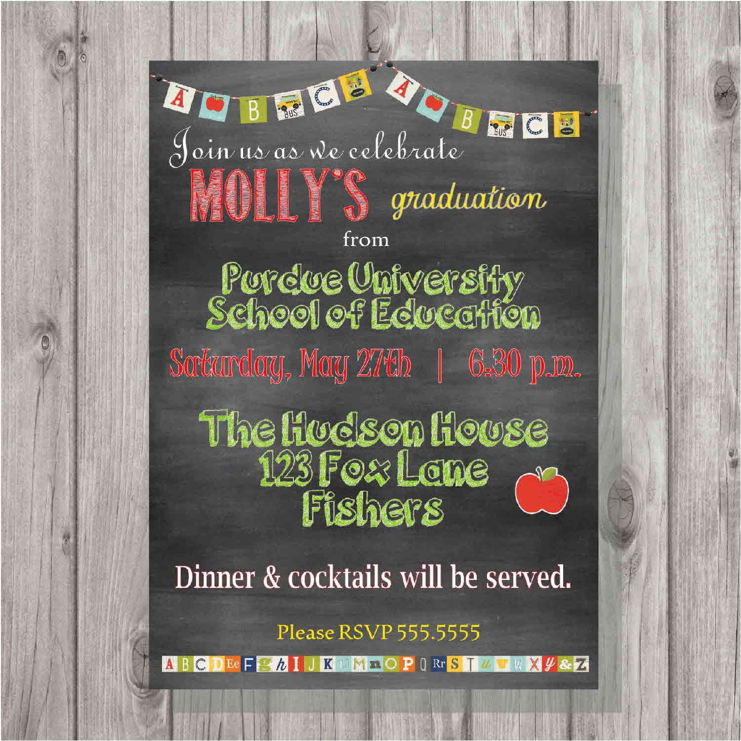 chalk style teacher graduation party invitation 4×6 or 5×7 from teacher graduation party invitations