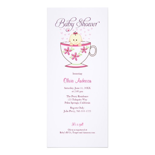 Baby in Tea Cup Baby Shower Invitations 4" X 9 25 from teacup baby shower invitations