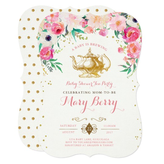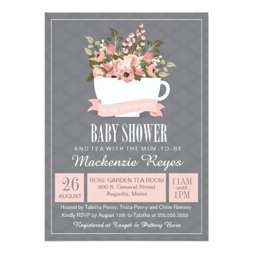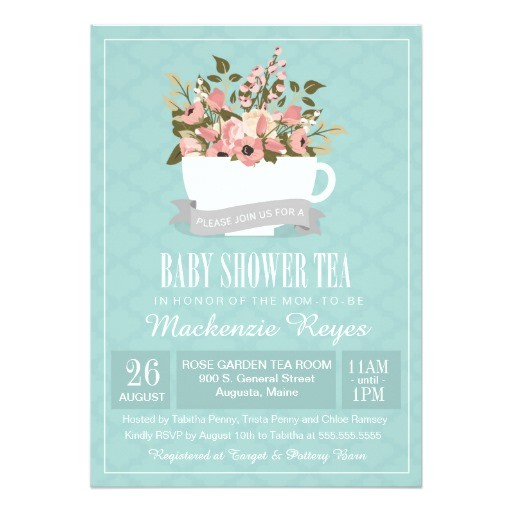 floral teacup baby shower tea invitation
