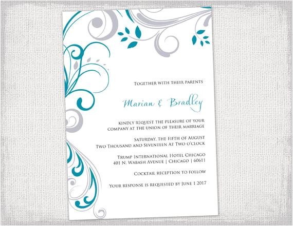 teal and gray wedding invitations template diy printable from Teal Wedding Invitation Blank Template