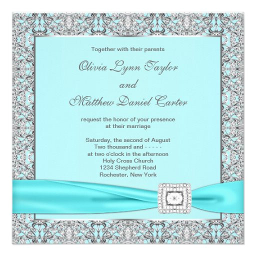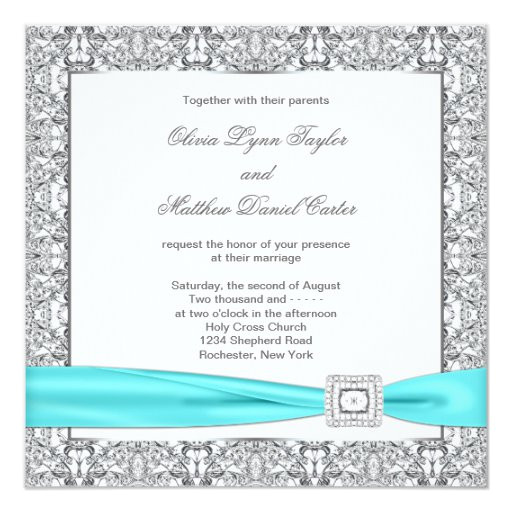 teal blue silver wedding invitation templates zazzle from Teal Wedding Invitation Blank Template