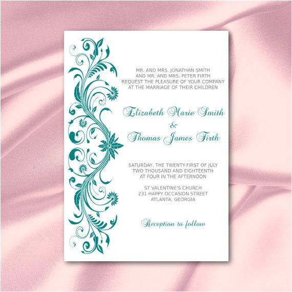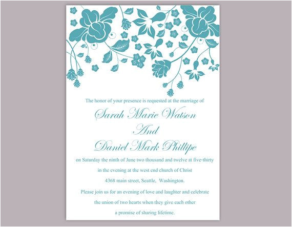 diy wedding invitation template editable word file instant from Teal Wedding Invitation Blank Template