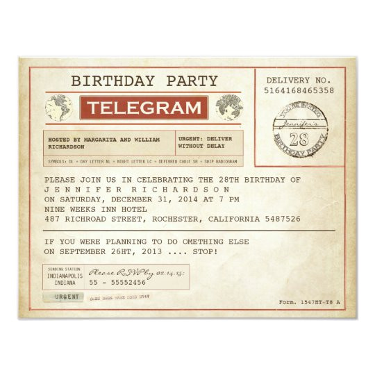 vintage birthday telegram invitation zazzle com from Telegram Wedding Invitation Template
