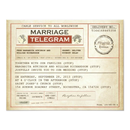 vintage telegram wedding invitations bridal party from Telegram Wedding Invitation Template