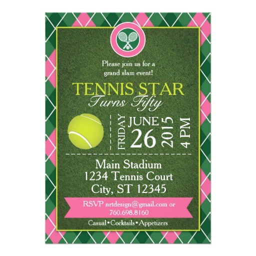 grand slam tennis party invitation grn pink 5×7 zazzle from tennis party invitation