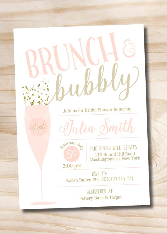 Brunch and Bubbly Bridal Shower Invitation Confetti Glitter from text for bridal shower invitation
