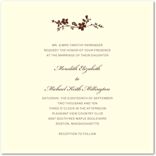 There are along with many options for blend and be of the same opinion wedding invitations. These are often sets of invitations that have many swing options available for each of the pieces of your invitation set, from invitation paper to envelopes, fonts and scripts and more. By hand selecting these choices, you can make an individualized look to your invitations that speaks of the two of you as a couple without having identical invites that someone else has.