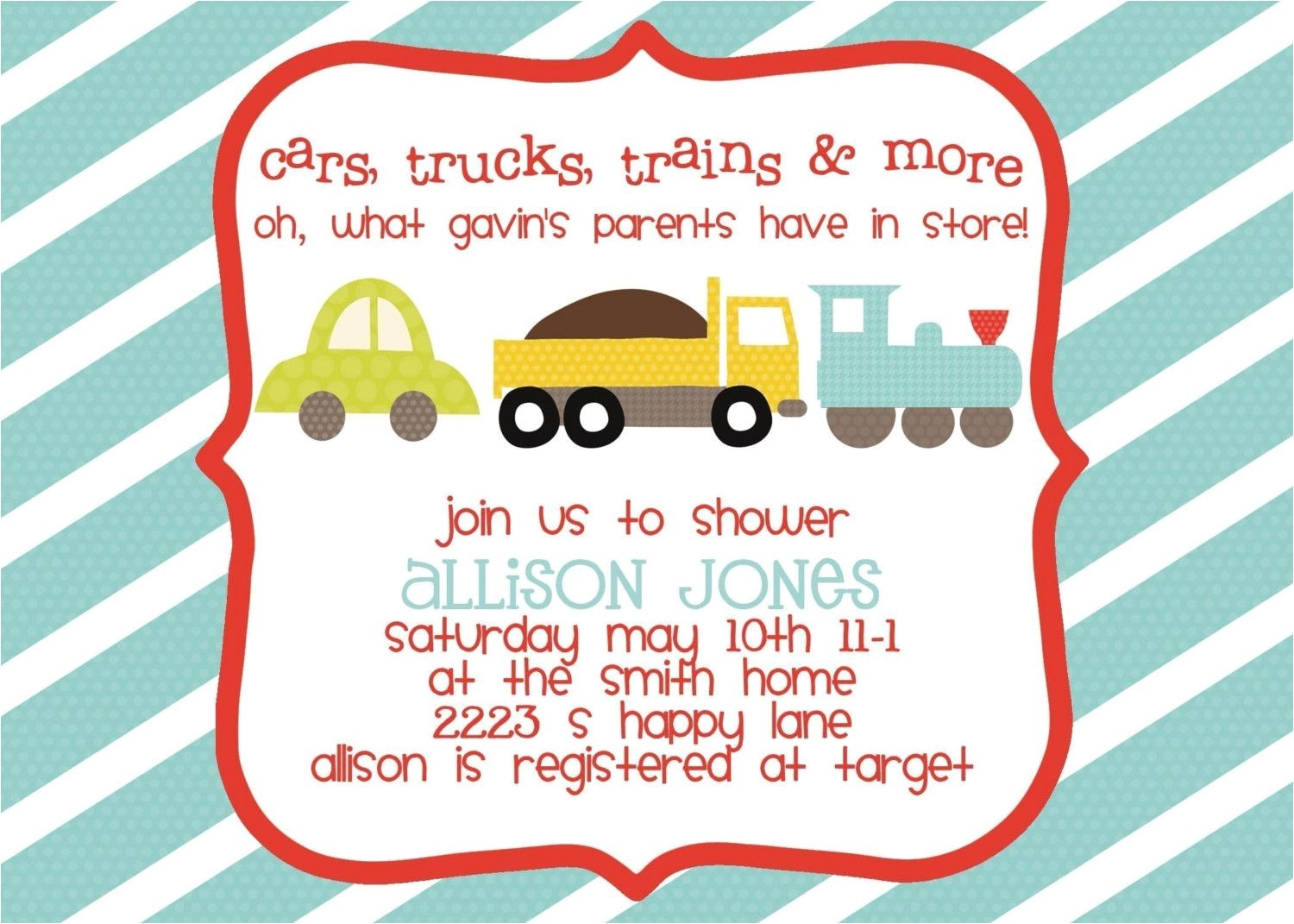 Baby Shower Invitation Cars Trucks Trains from train themed baby shower invitations