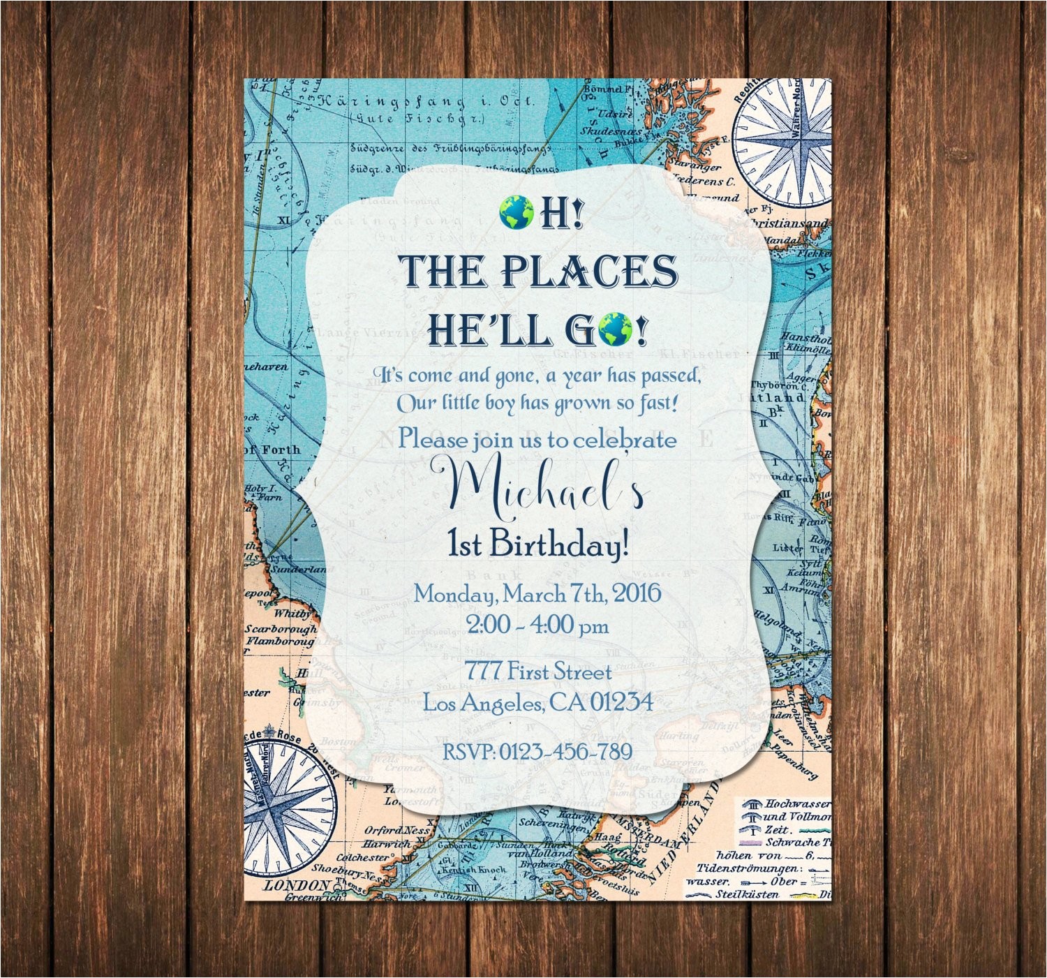 oh the places you 39 ll go birthday invitation map birthday from travel themed party invitations