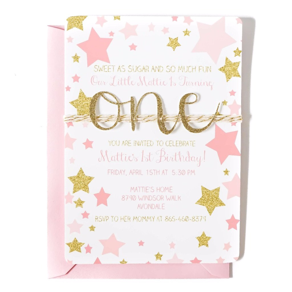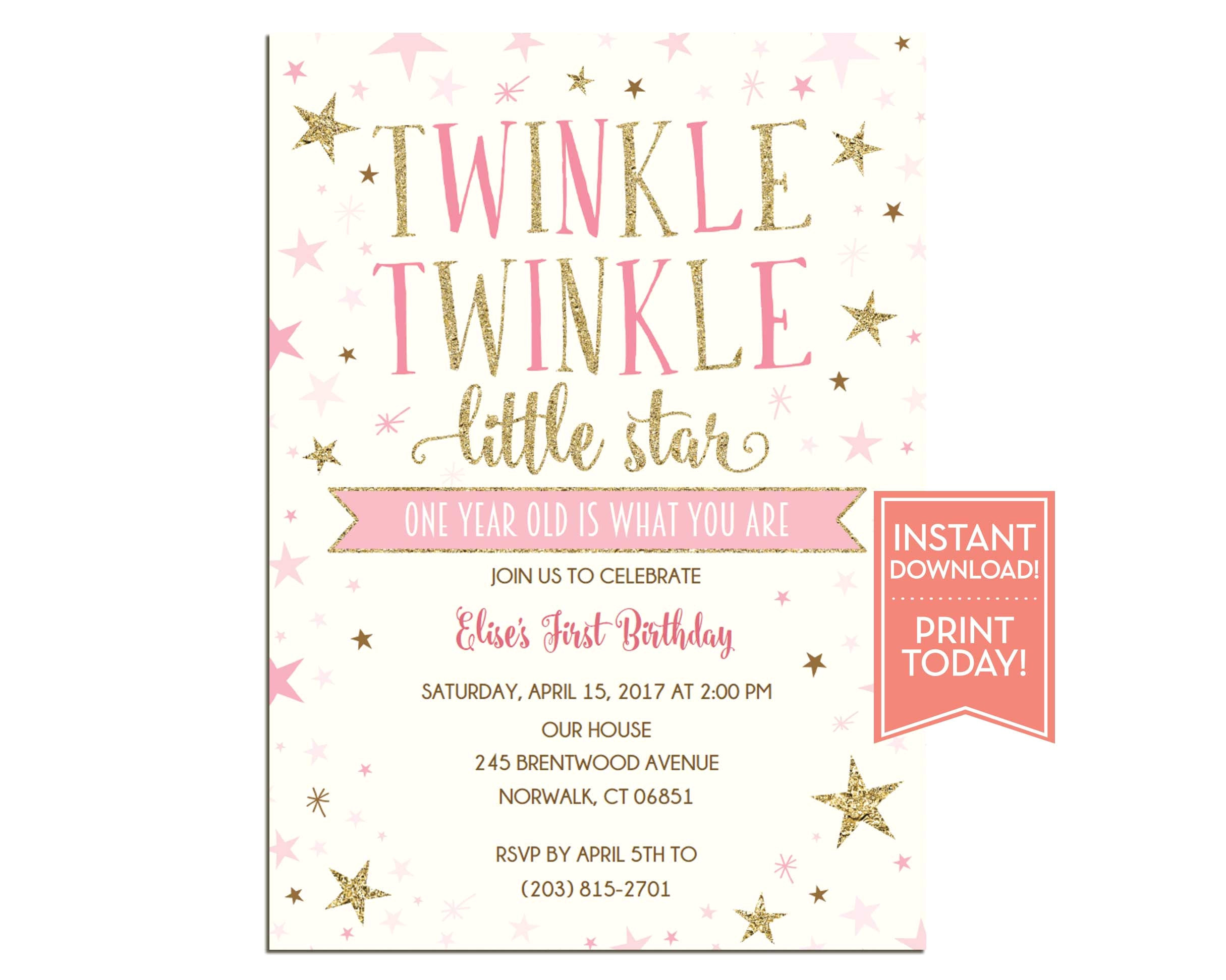 twinkle twinkle little star birthday invitation blush gold from Twinkle Twinkle Little Star Birthday Invitation Template Free