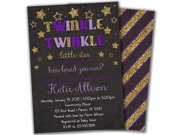 Purple Twinkle Twinkle Little Star Invitation Girl Baby from twinkle twinkle little star girl baby shower invitations