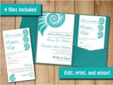 pocketfold wedding invitation template set beach wedding from Two Fold Wedding Invitation Template