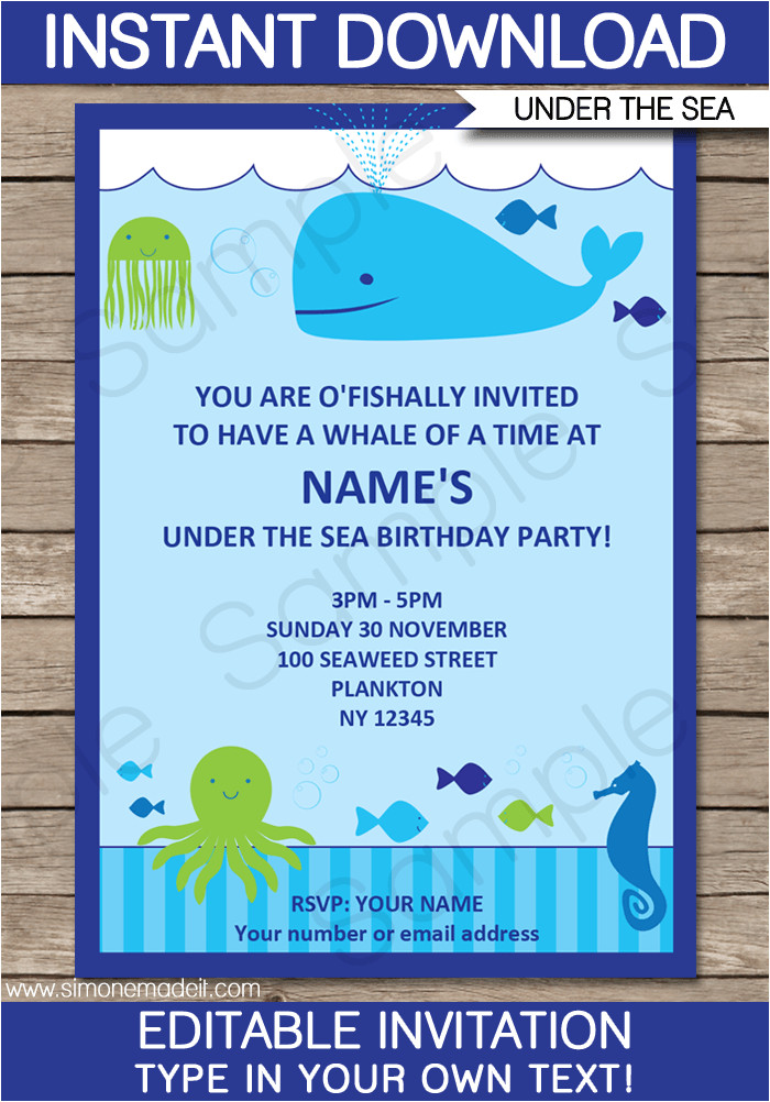 under the sea invitation printable or printed with free etsy from Under The Sea Birthday Party Invitation Template