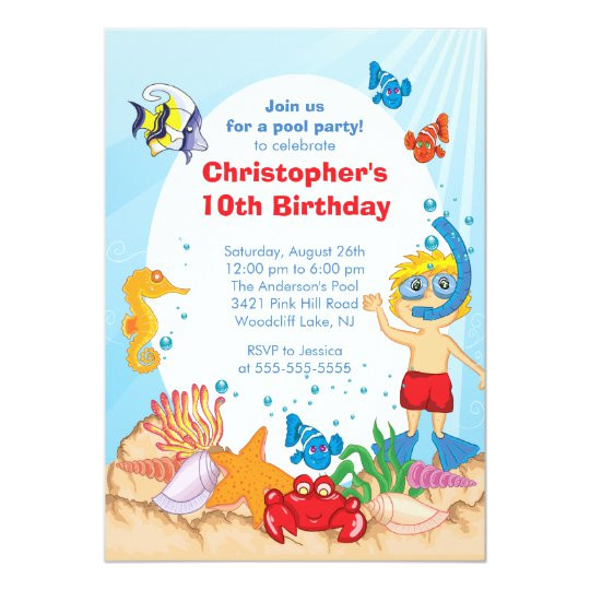 under the sea pool party birthday invitation boy zazzle com from Under The Sea Birthday Party Invitation Template