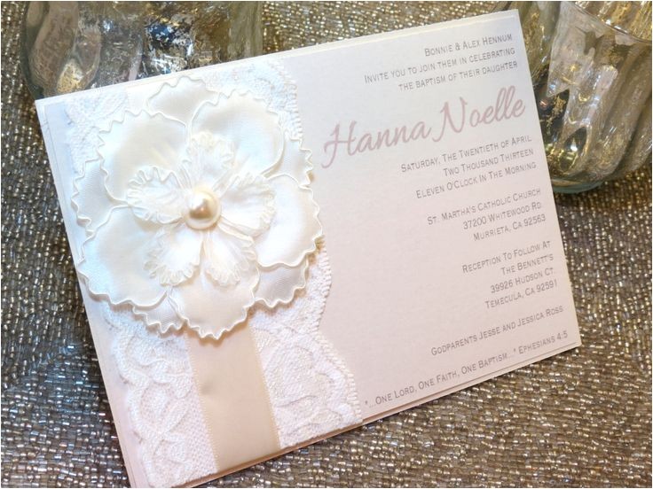 HANNA Ivory Pearl Lace Baptism Invitation Unique Flower from unique invitation ideas for baptism