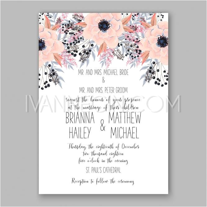 anemone wedding invitation card printable template from Unique Wedding Invitation Card Template