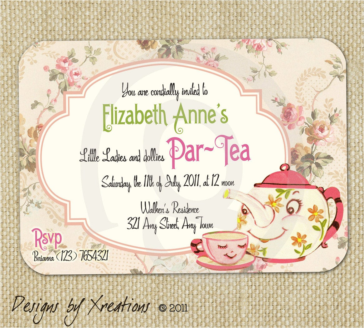 printable tea party birthday invitation 4 25 x by cyanandsepia from Vintage Tea Party Invitation Template
