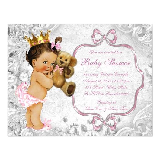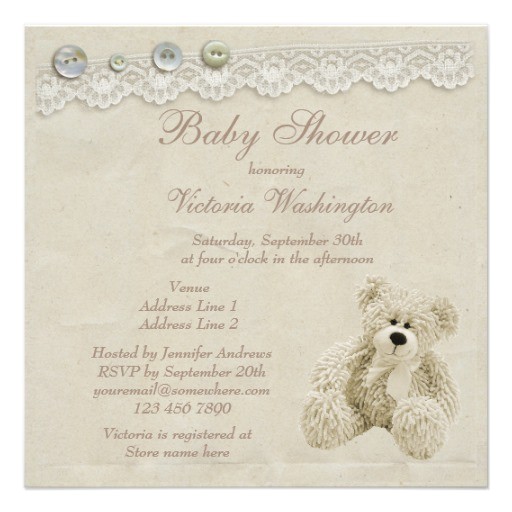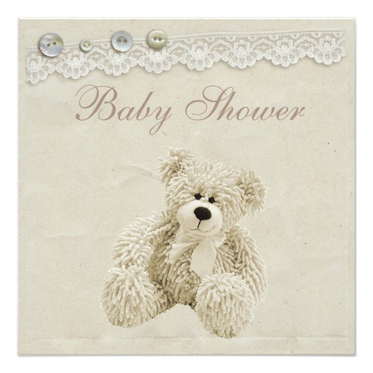 Neutral Teddy Bear Vintage Lace Baby Shower Custom Invites from vintage teddy bear baby shower invitations