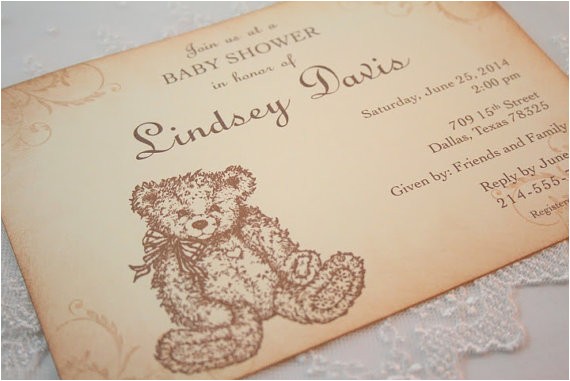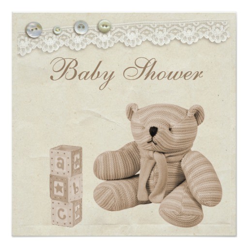 vintage teddy bear baby shower invitations sample: