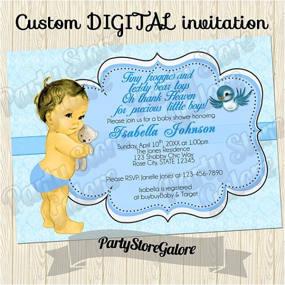 Vintage Baby BOY Shower Invitations cottage chic teddy bear from vintage teddy bear baby shower invitations