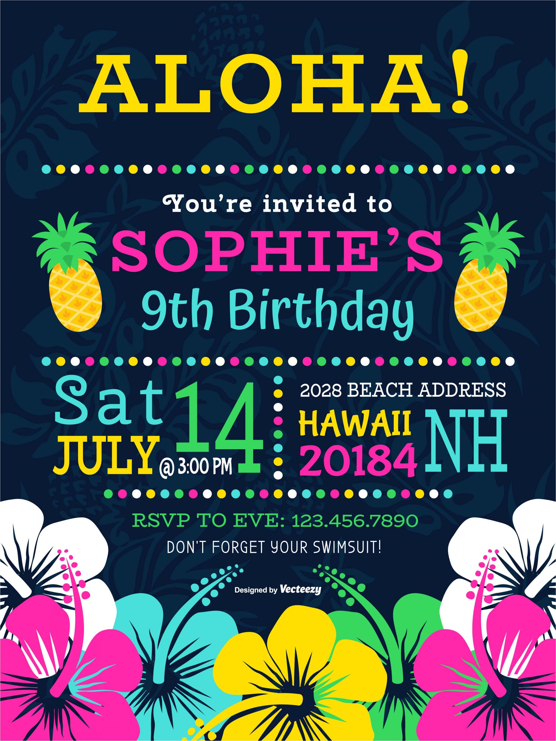 colorful polynesian birthday party vector invitation from Virtual Birthday Invitation Template