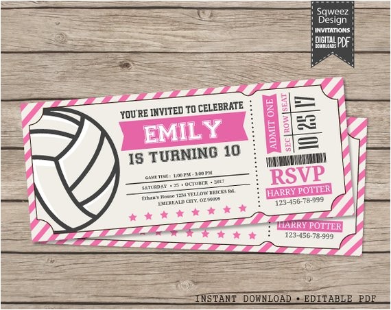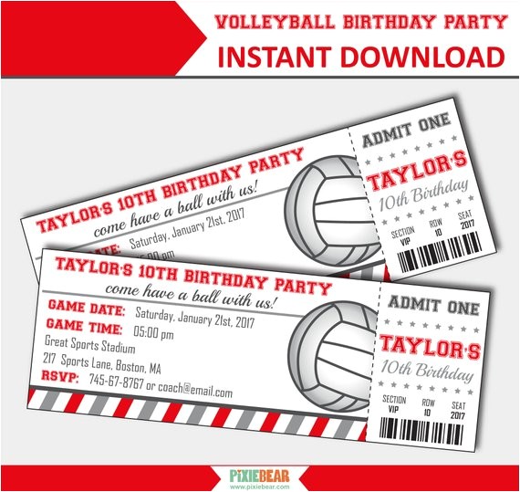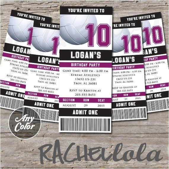 volleyball ticket invitations birthday party print your from volleyball party invitations