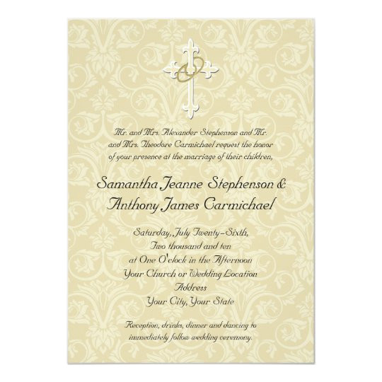 golden rings cross christian wedding invitations zazzle com from Wedding Card Invitation Wordings Christian