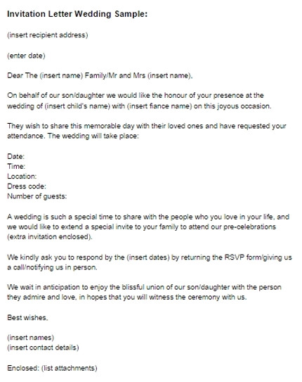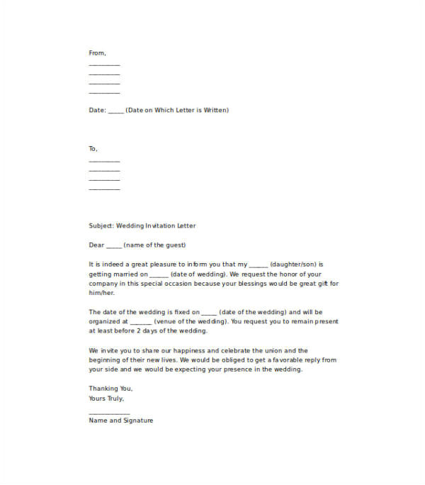 sample invitation letter 19 download free documents in from Wedding Invitation Letter Template