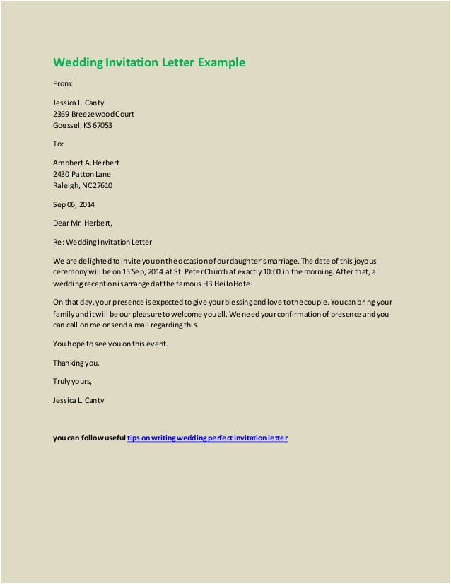 wedding invitation letter example in word and pdf formats from Wedding Invitation Letter Template