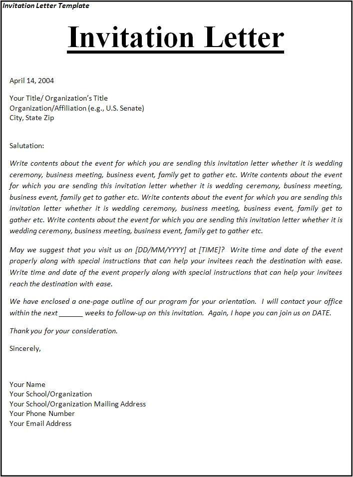 formal meeting invitation templates from Wedding Invitation Letter Template