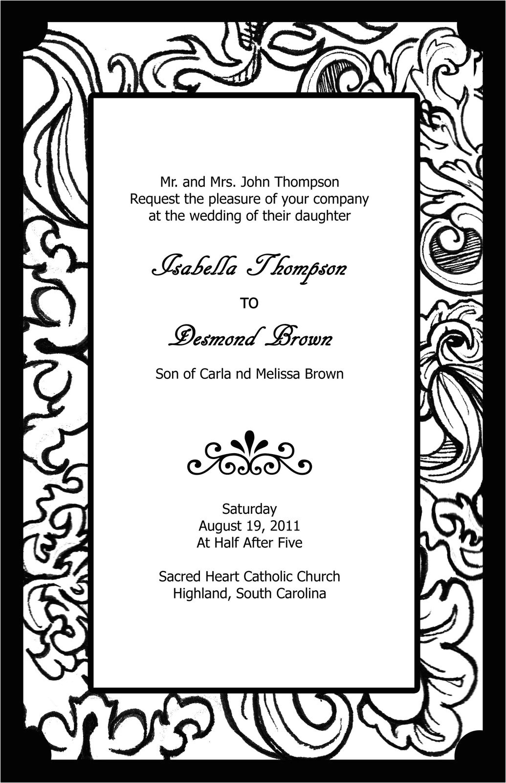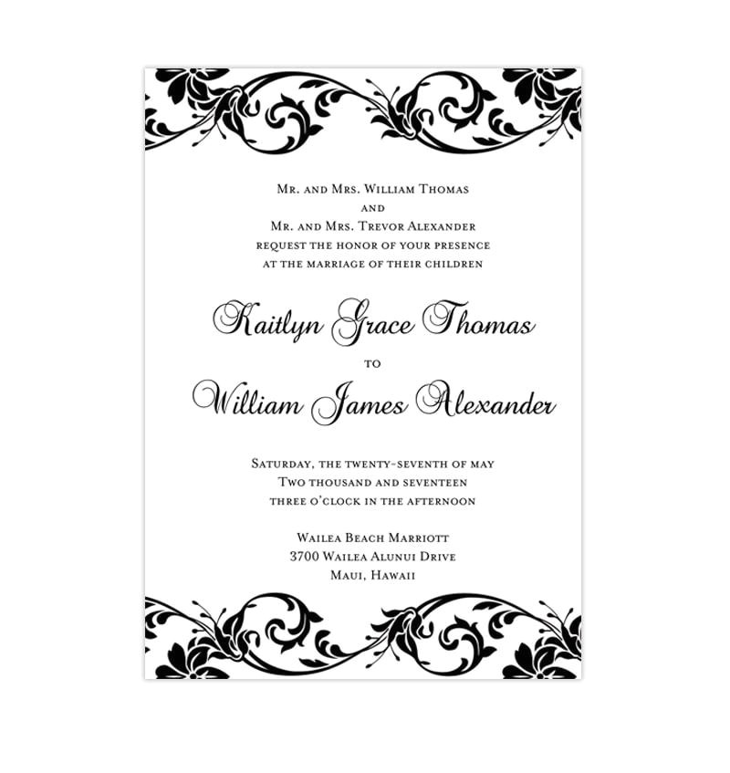 Wedding Invitation Template Black And White sample: