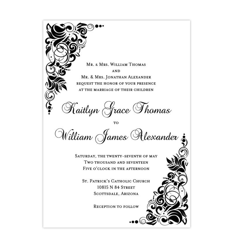 Wedding Invitation Template Black and White