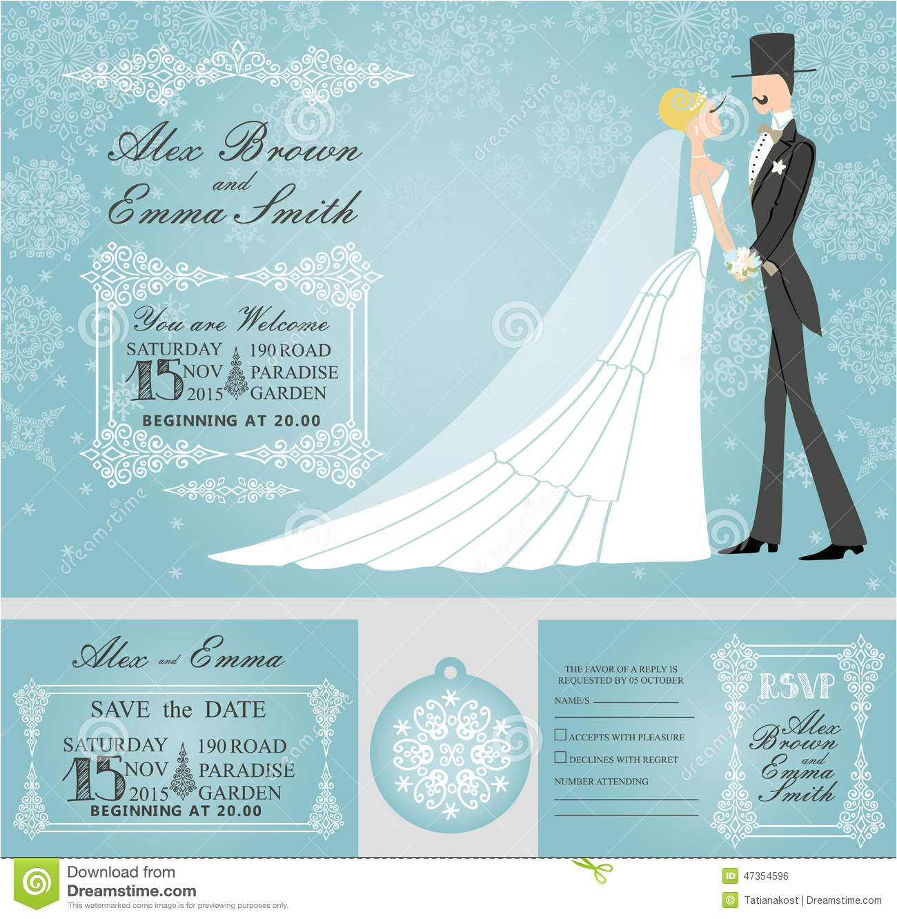 winter wedding invitation set rero bride groom stock from Wedding Invitation Template Bride And Groom
