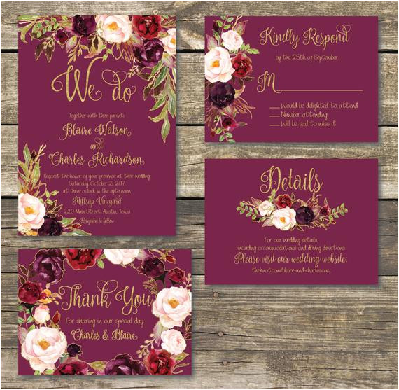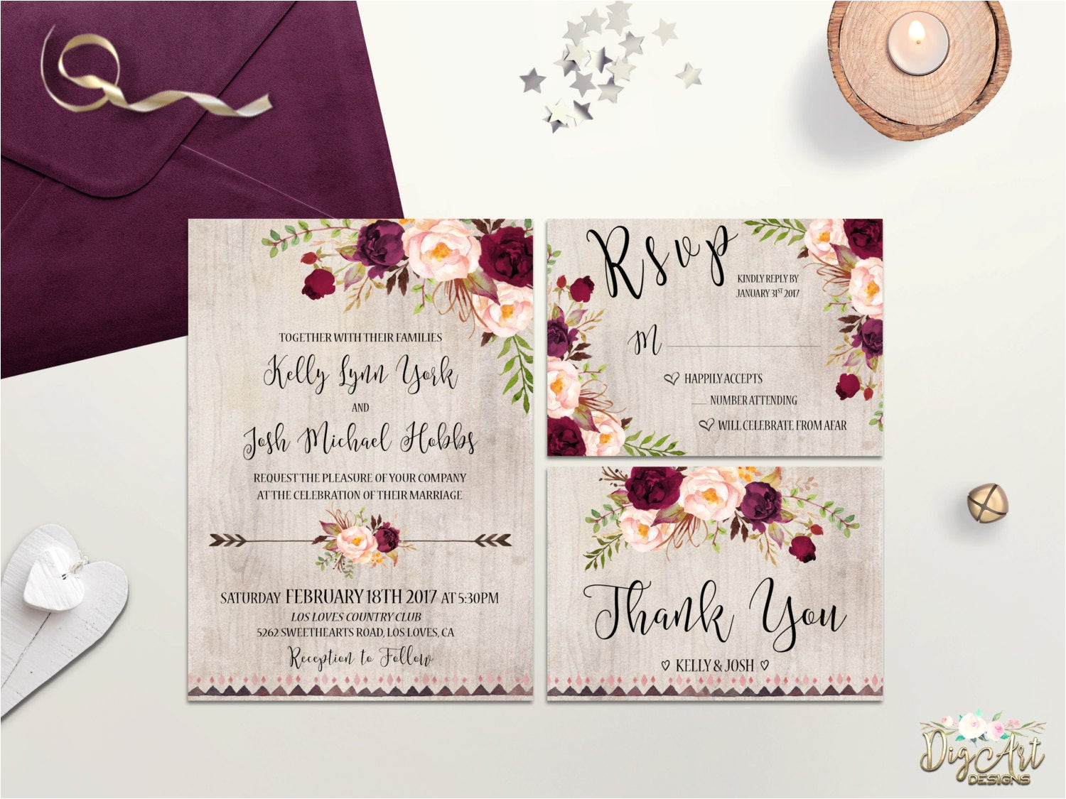 burgundy wedding invitation printable wedding invite rustic from Wedding Invitation Template Burgundy