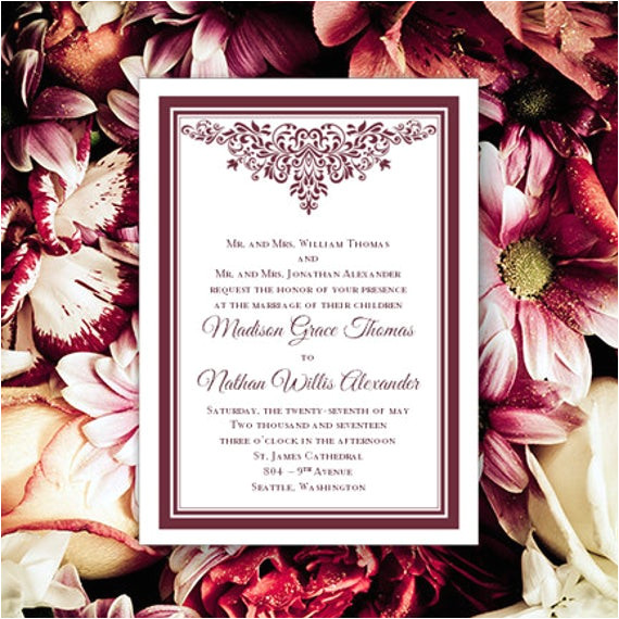burgundy wedding invitation template marsala wedding from Wedding Invitation Template Burgundy