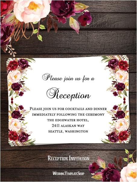 wedding reception invitations burgundy red blush pink from Wedding Invitation Template Burgundy