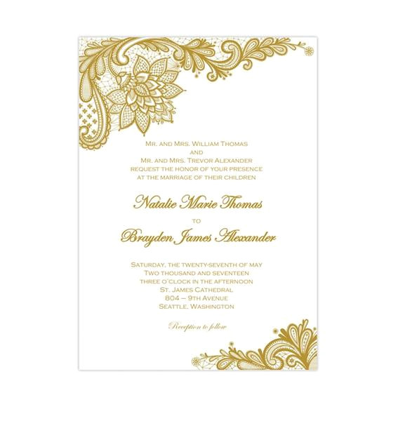 gold vintage lace wedding invitations diy printable from Wedding Invitation Template Buy