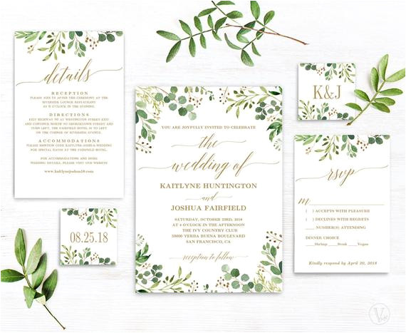 greenery wedding invitation template green and gold etsy from Wedding Invitation Template Buy