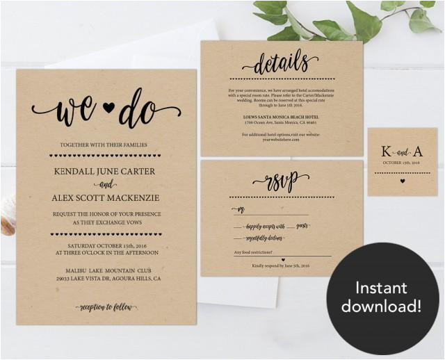 printable wedding invitation template instant by swellandgrand from Wedding Invitation Template Buy