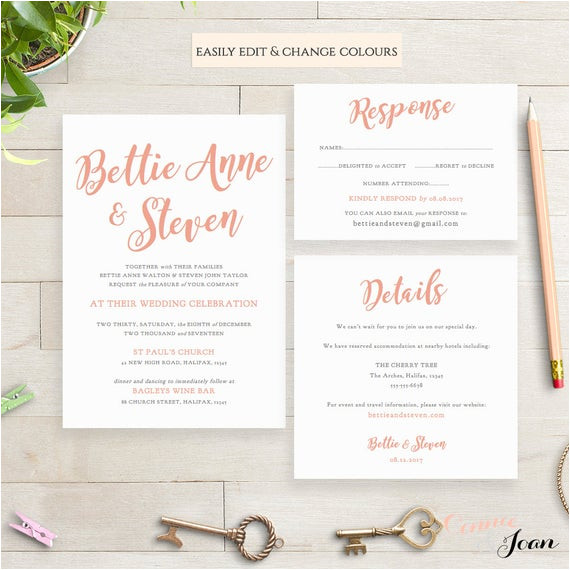 wedding invitation template set printable by connieandjoan from Wedding Invitation Template Buy