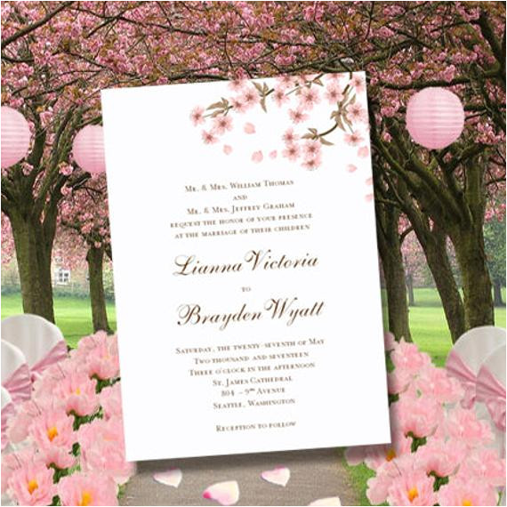 printable wedding invitation template cherry blossom with from Wedding Invitation Template Cherry Blossom