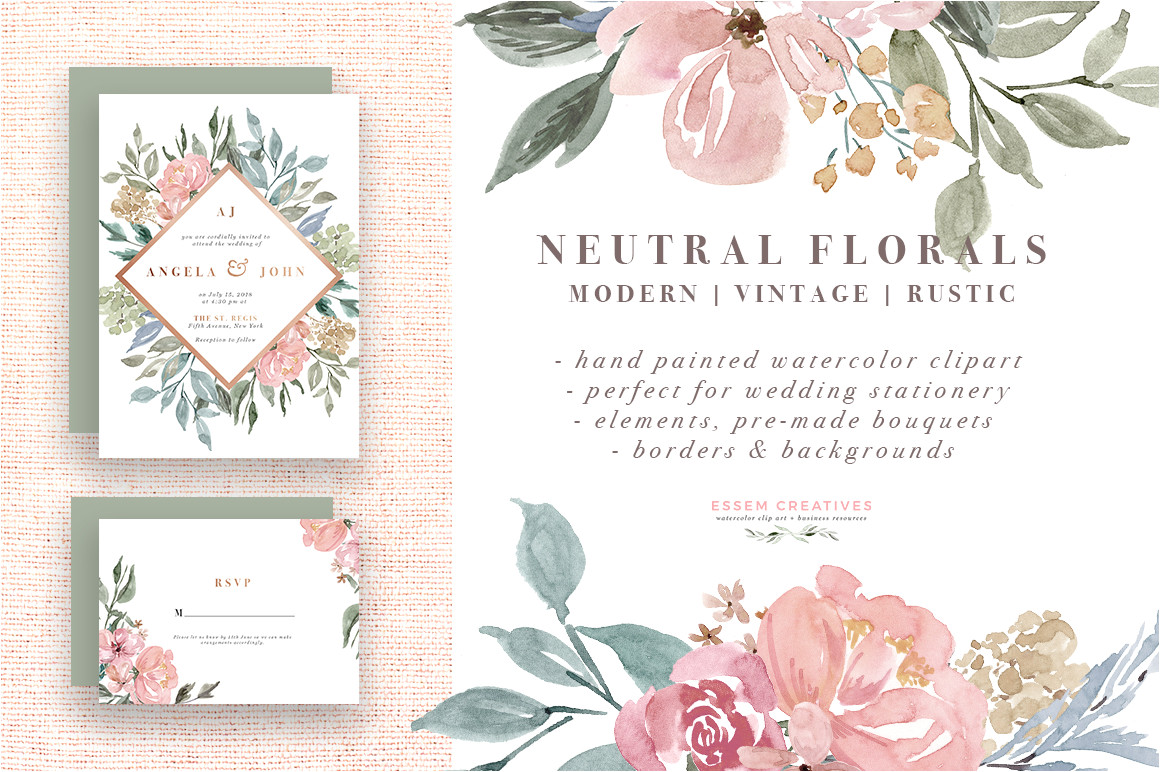 neutral watercolor flowers clipart floral borders from Wedding Invitation Template Commercial Use